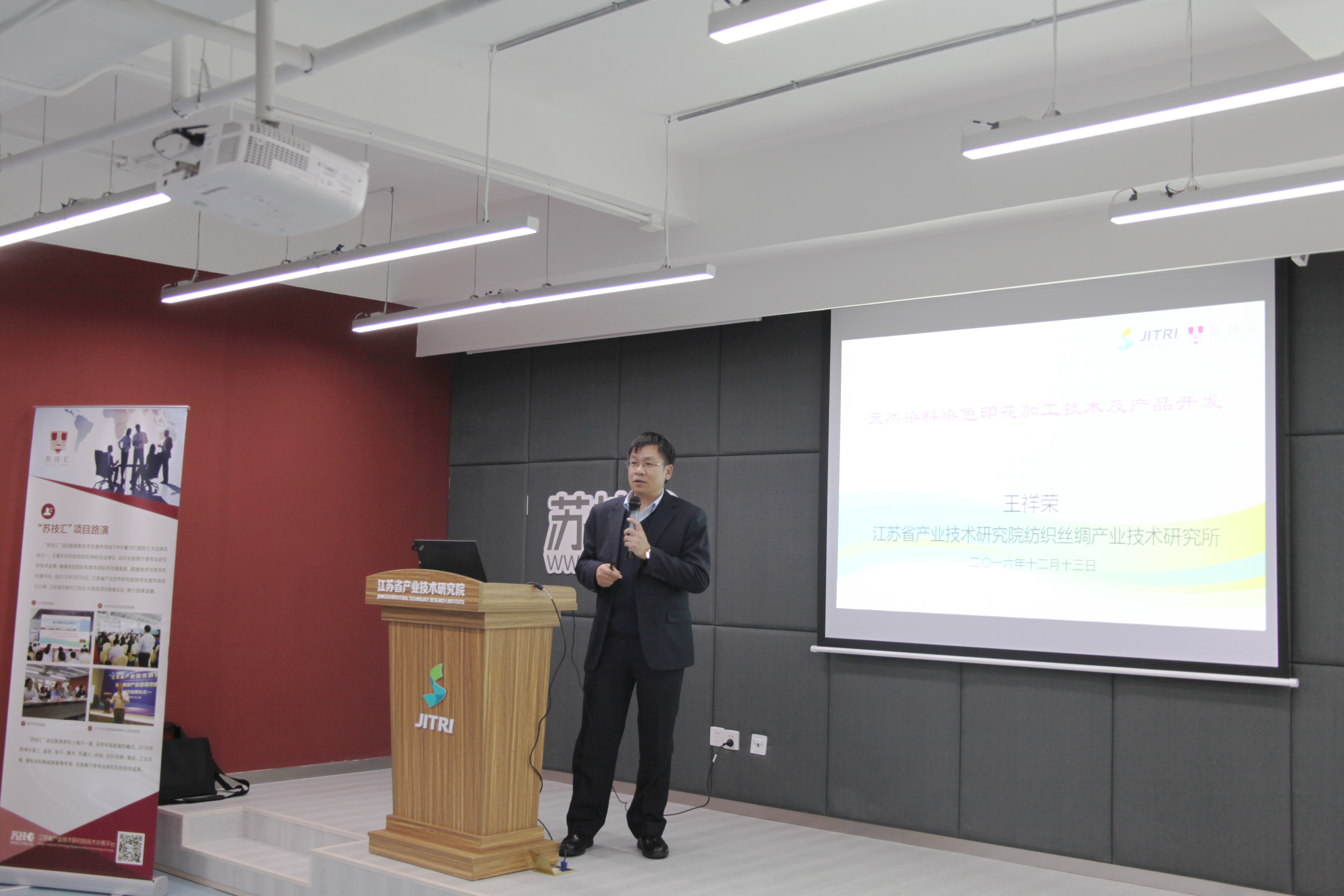 12月13日,由江苏省产业技术研究院主办,江苏省产业技术研究院技术交易市场和我所共同承办的“苏技汇”纺织丝绸专场项目路演活动在省产研院技术交易市场多功能厅顺利举行。