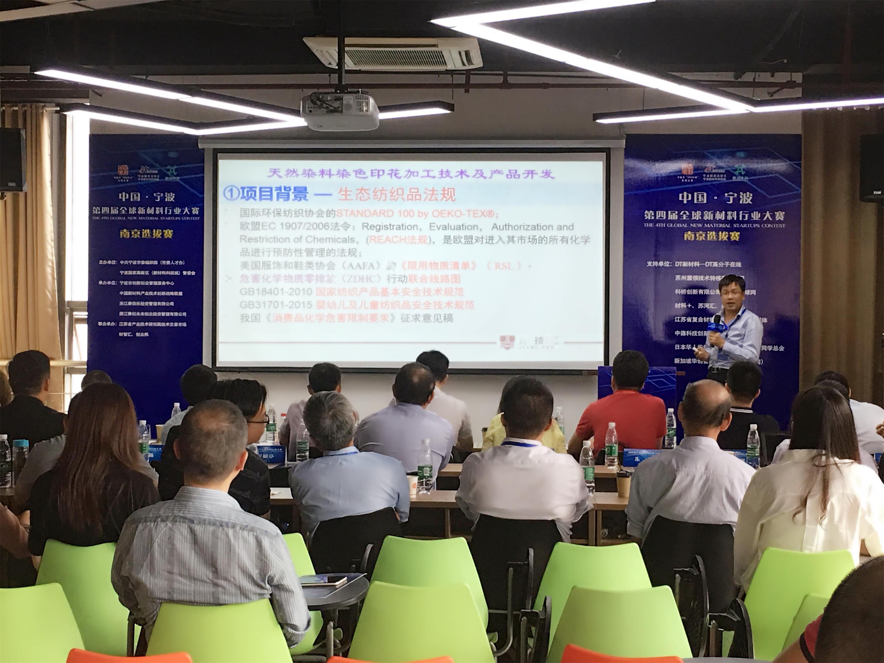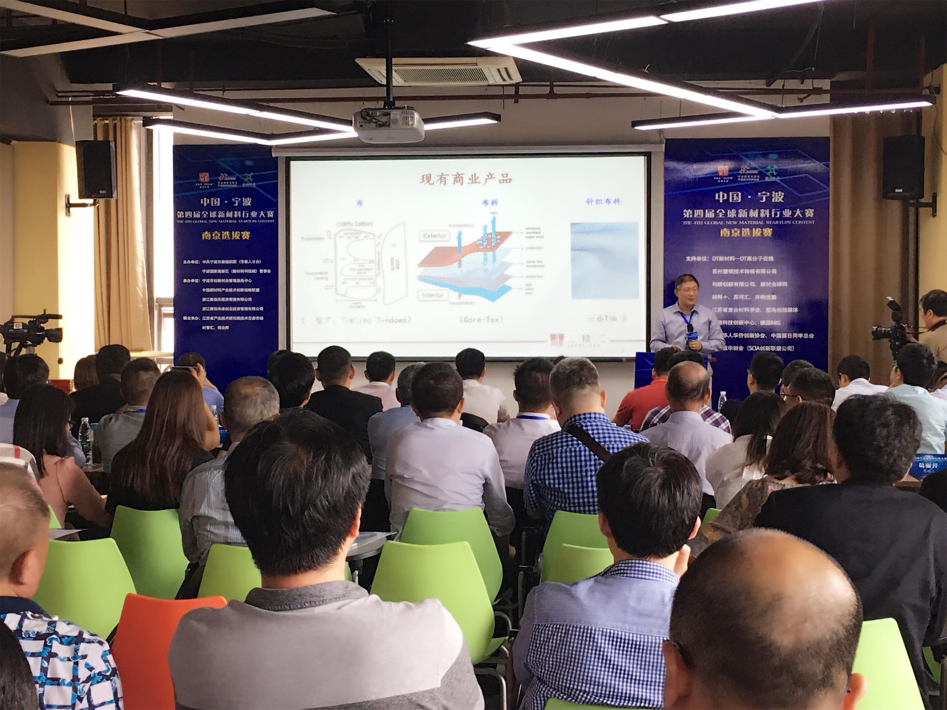 5月25日,中国·宁波第四届全球新材料行业大赛首场选拔赛在南京软件大厦创业邦打响,来自华东地区的21个新材料领域项目展开激烈角逐。最终,共有12个项目成功突围,晋级半决赛。我所三个项目通过去年的路演,由江苏省产业技术研究院推荐筛选参赛,三个项目成功晋级:(1)“新型单向导湿、高透气纺织品及绿色制备技术”--林童此项目是经该技术处理过的纺织品具有定向导汗与导湿性能,能有效保持单侧纺织品的干爽感,并在干和湿的状态下都有很高的透气性。本团队还开发了实现这种功能性纺织品的材料。这些材料在使用时配成水溶液,不含任何有机溶剂和有毒害物质,生产过程中处理过的纺织品也不需要清洗,因而不产生废水污染。