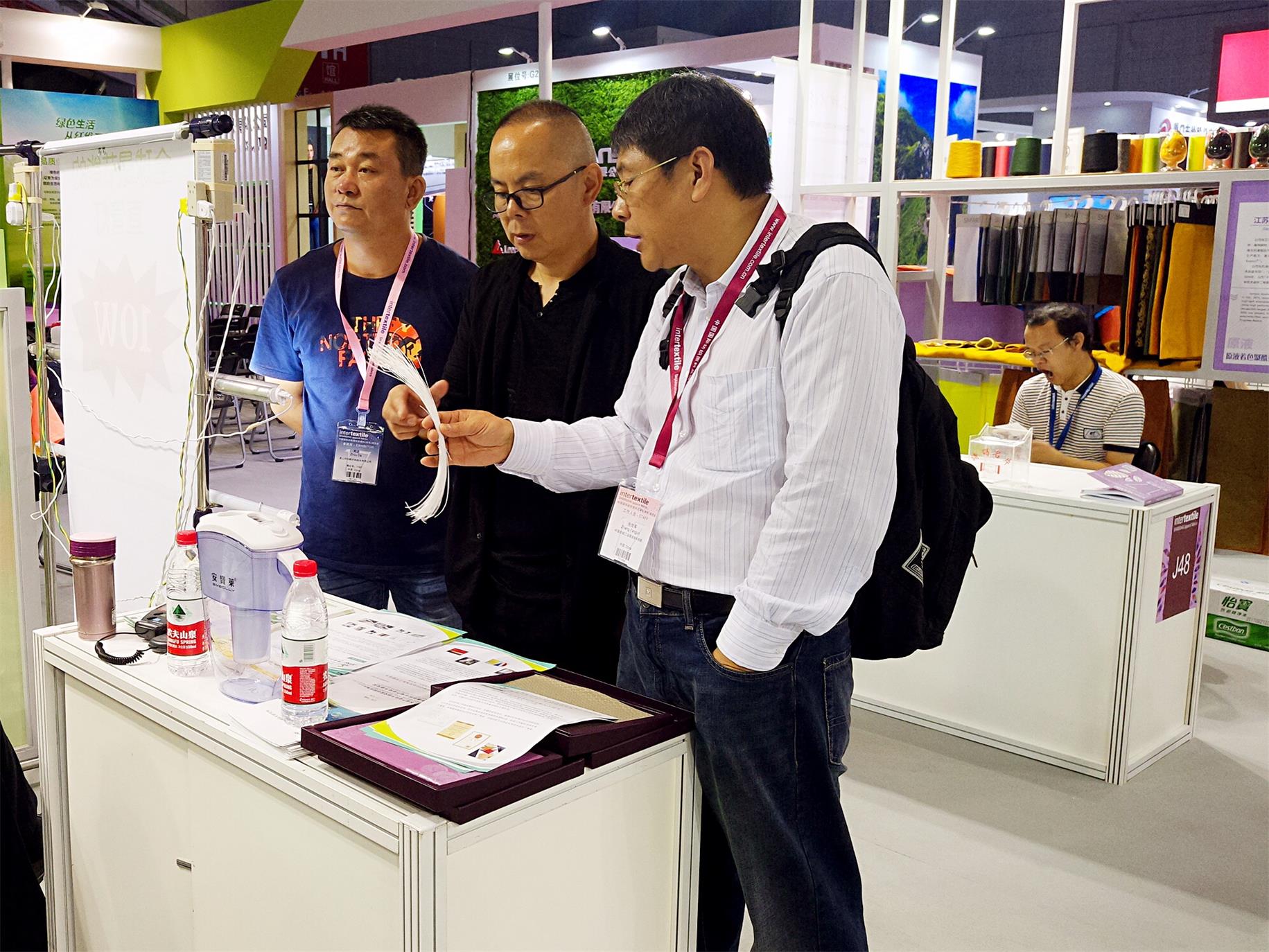 2017年10月11-13日,由中国纺织工业联合会主办,中国纺织工业联合会科技发展部、中国贸易促进委员会纺织行业分会共同承办的 2017“中国国际纺织面料及辅料(秋季)博览会”之“新技术创新空间”活动在国家会展中心(上海)举行。“新技术创新空间”是围绕《建设纺织强国纲要》、《纺织工业“十三五”科技进步纲要》提出的重点任务,在大型纺织展览会、博览会上举办的新材料、新技术成果展览、展示和交流活动,目的是搭建纺织技术成果交流展示和互动平台,扩大成果的宣传与推广。本次秋季面料展的“新技术创新空间”面积达 430 平方米,以“绿色、生态、循环、再生“为主题,重点展示近年来“循环、再生、功能新材料”的发展,对接企业合作。纺织丝绸技术研究所积极参与本次活动,重点宣传了“天然染料生态染色印花成套加工技术”、“生物质化学纤维纺织品及加工关键技术”、“热致相分离法制备聚偏氟乙烯中空纤维膜及其在水处理领域的应用”等项目成果;“迪肯-南通先进纤维材料联合研究院”及衍生企业“江苏纳纤新材料科技有限公司”主要研发产品。此次活动为研究所技术成果的推广和交流提供了良好的平台。