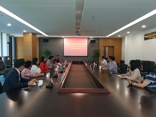 5月21日上午,拼搏在线登录执行院长居海滨在江海智汇园D1楼二楼会议室接待了老挝科技部官员布曼翁.苏莎莉女士(Somsanith BOAUMANIVONG)、老挝女双手公司总经理江月琴(Saysouda SAYASONE)、江月(Saysukountha SAYASONE)一行。研究院特聘教授徐世清陪同接待。
